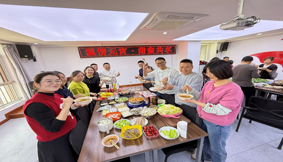 中午,一场充满节日温情的“美食共享”活动火热开启。活动现场气氛热烈,既有工会统一提供汤圆和辅料、各部门自备器具的“温情元宵·甜蜜共享”煮汤圆环节,更有大家围炉而坐、热气腾腾的全员火锅盛宴。在氤氲的热气与翻滚的红汤中,同事们亲手烹制美食,分享甜蜜汤圆,畅享麻辣鲜香。欢声笑语此起彼伏,大家在推杯换盏间感受集体温暖,共话团圆美满,现场洋溢着家一般的温馨与热闹。