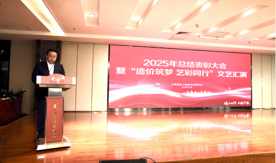 为总结年度工作成果,表彰先进典型,同时丰富行业文化生活,宁夏建设工程造价管理协会于2025年12月31日顺利举办了2025年度总结表彰大会暨文艺汇演活动。行业管理部门、协会领导及单位会员代表等200余人齐聚一堂,共同回顾协会一年的工作历程,展望未来蓝图,并欣赏了一场精彩纷呈的文艺盛宴。