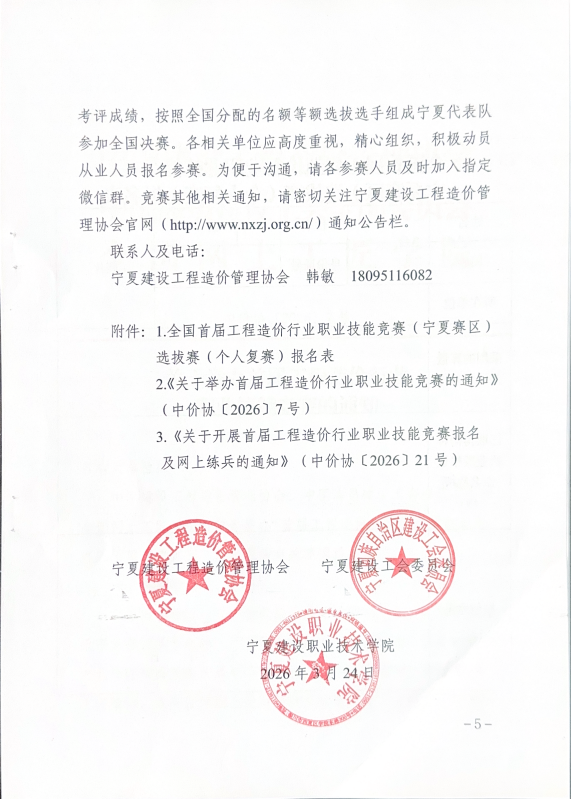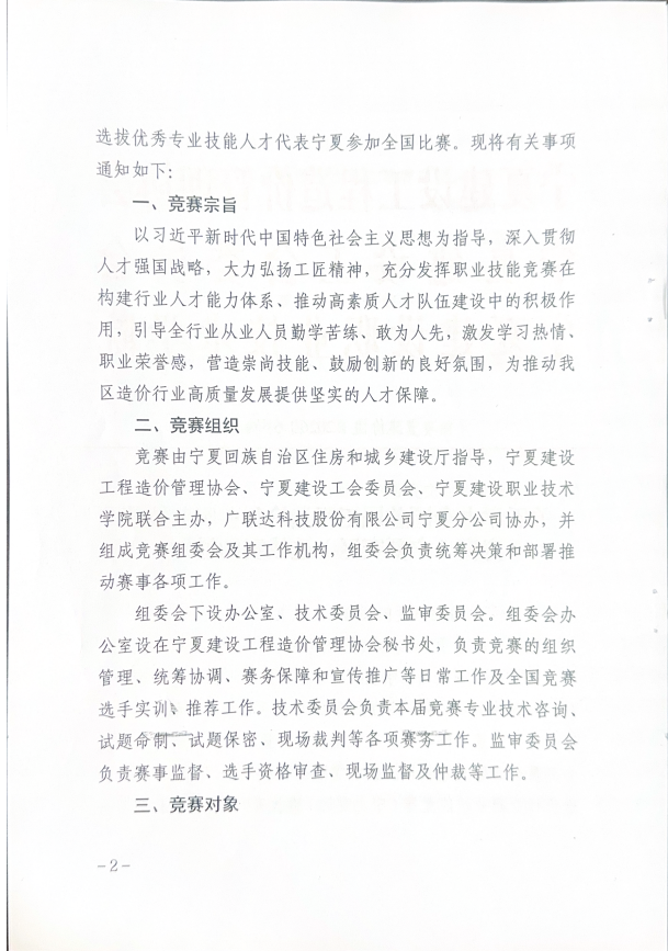 关于举办全国首届工程造价行业职业技能竞赛(宁夏赛区)选拔赛的通知