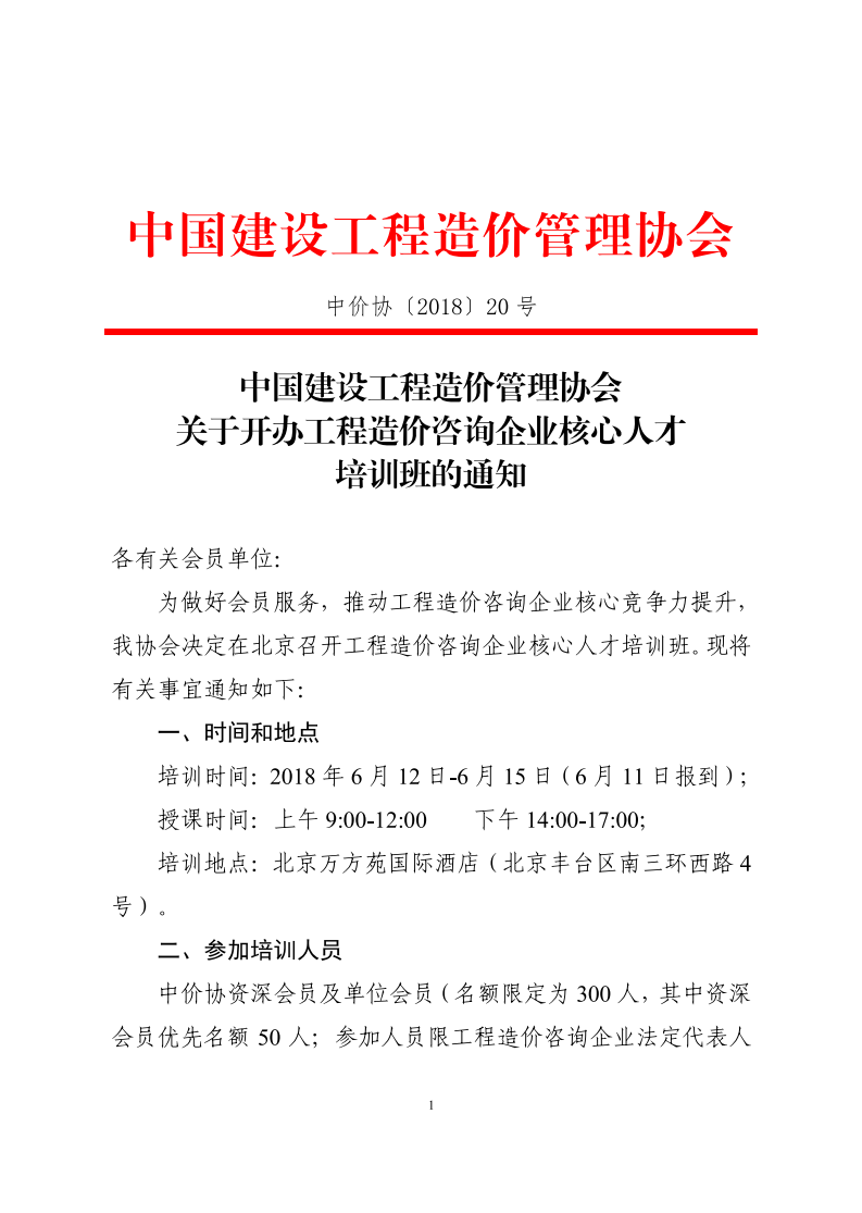 附件:《中国建设工程造价管理协会关于开办工程造价咨询企业核心人才培训班的通知》