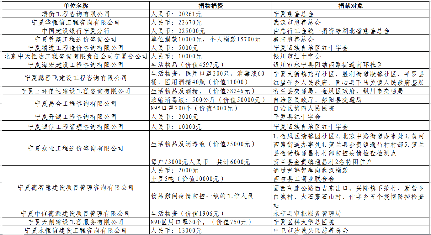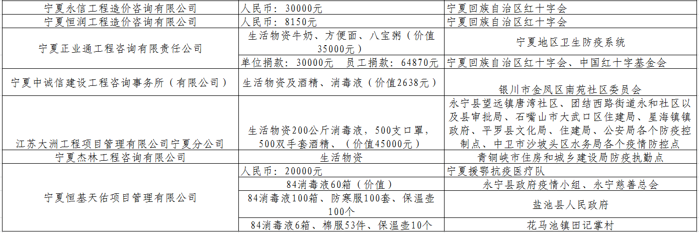 抗击疫情,共献爱心 --宁夏造价行业在行动